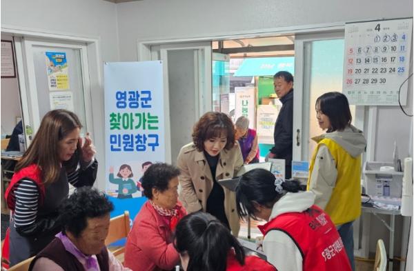영광군은 지난 10일 묘량면 운암마을회관을 찾아가 거동이 불편한 주민과 사회배려대상자 주민들의 고충을 듣고 현장 상담을 해주는 맞춤형 민원 상담 서비스 ‘찾아가는 사회배려대상자 민원창구’를 운영했다.