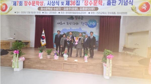 장수군은 ‘제7회 장수문학상 시상식 및 2025년 ’장수문학‘ 제36집 출판 기념식’을 장수군민회관에서 개최했다고 11일 밝혔다.