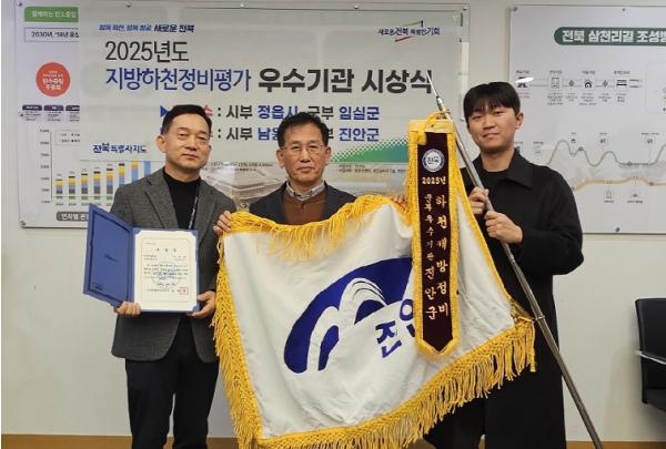 진안군이 전북특별자치도가 주관한 '2025년 지방하천 정비 평가'에서 우수기관으로 선정돼 기관 표창을 수상했다.