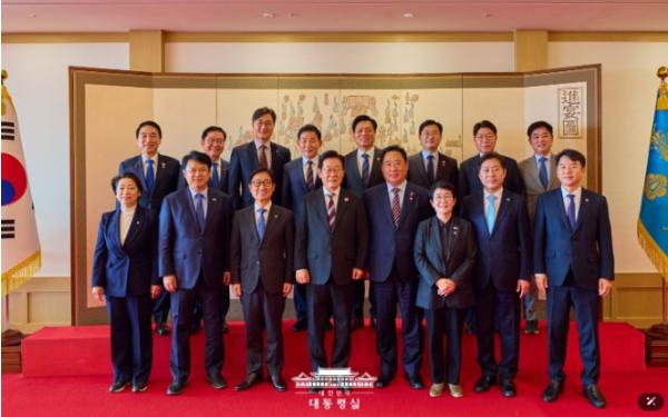 이재명 대통령은 오늘 더불어민주당 대전, 충남 국회의원들을 대통령실로 초대해 오찬 간담회를 가졌다.